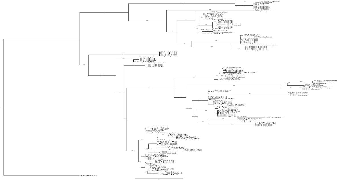 Naravno ovo je samo ITS lokus. Filogenija je slomljena ali znam i u kojim klejdovima. Moraju se koristiti i proteinski geni ili bar jos LSU da bi se resile odredjene grupe.