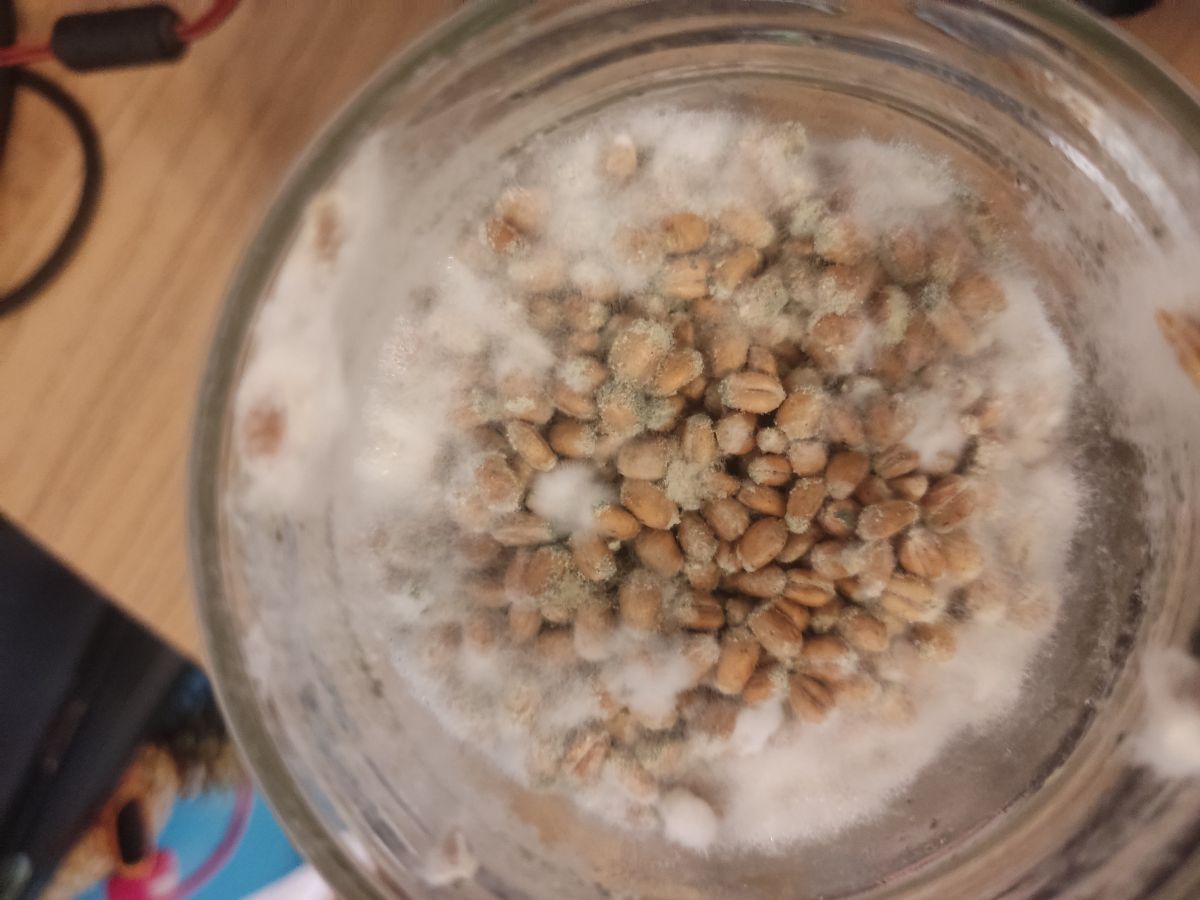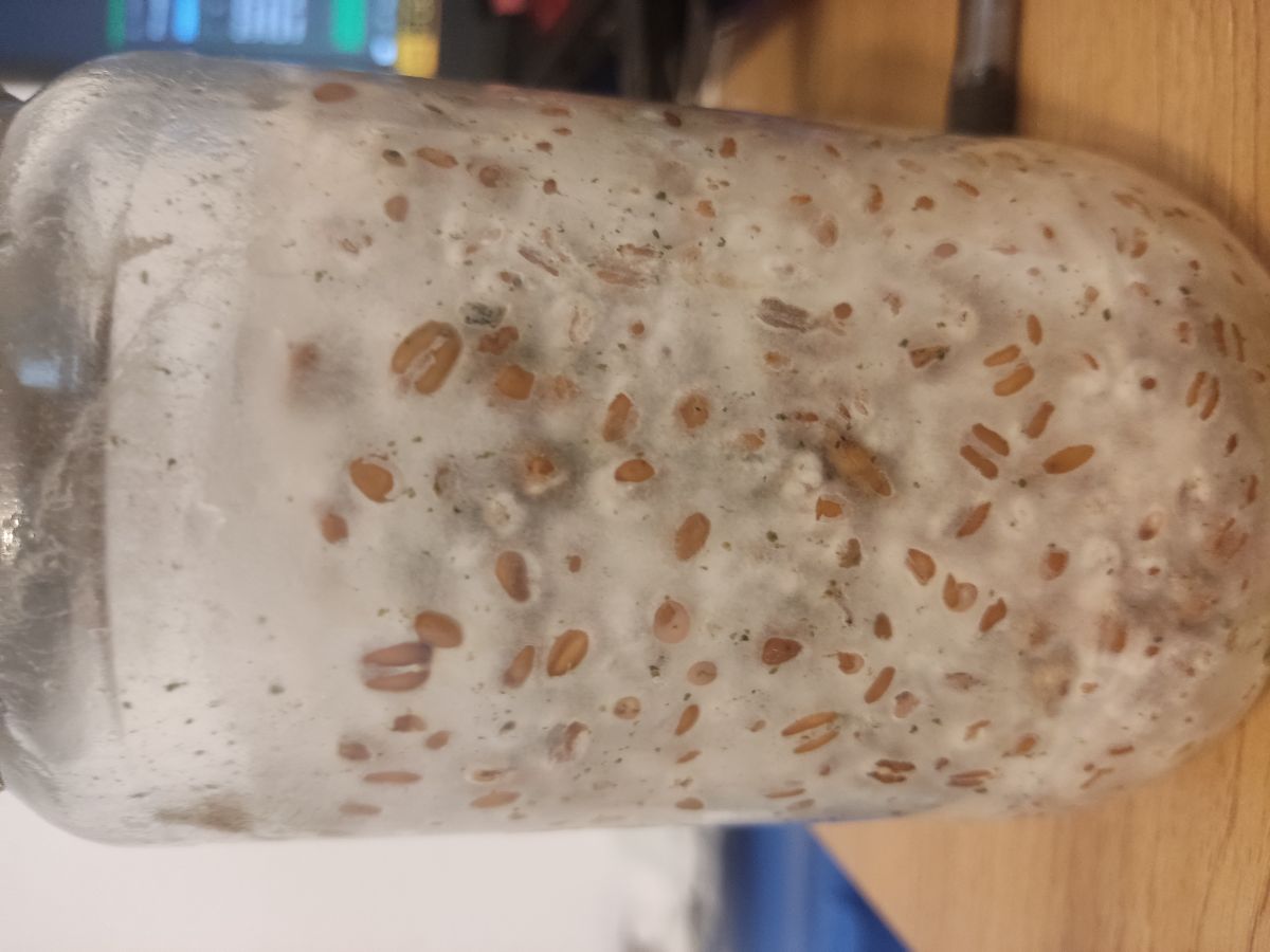 Pozdrav svima, prvi post, novi sam na forumu. Uglavnom, krenuo sam s uzgojem, inokulirao sam 2 teglice. Prva je nažalost propala jer je bilo previše vlage (nisam dobro posušio zob). Ovo su slike druge teglice, micelij je išao jako sporo, vjerujem radi hladnije temperature, ali je progresiralo. Prvih 10 dana ništa, i onda je krenulo. E sad, vidim da u teglici ima nekakvih točkica, a gore kad se otvori poklopac vidi se plijesan ? Ne znam što je, ali nekakav kontaminat je. Što sada dalje da radim ? Je li ovo za baciti ili da idem na drugu fazu i nastavim ? Da li je uopće štetno ako gljive uspiju izrasti, je li onda takva gljiva nejestiva ili